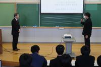 講話では、就職活動の流れや職業選択のポイントなどについて、アプリケーションを利用した活動をしながら分かりやすくお話しいただきました。生徒たちは積極的に活動に参加しており自分の将来について考える大切な機会の一つになったかと思います。