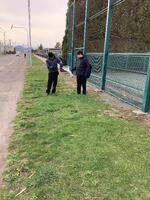 4月17日(金)放課後に各クラスの保健委員で駐輪場、グラウンド、校舎外の歩道の清掃を行いました。ペットボトルや空き缶などのゴミを拾いました。 校内も校外も綺麗にするように心掛けましょう。