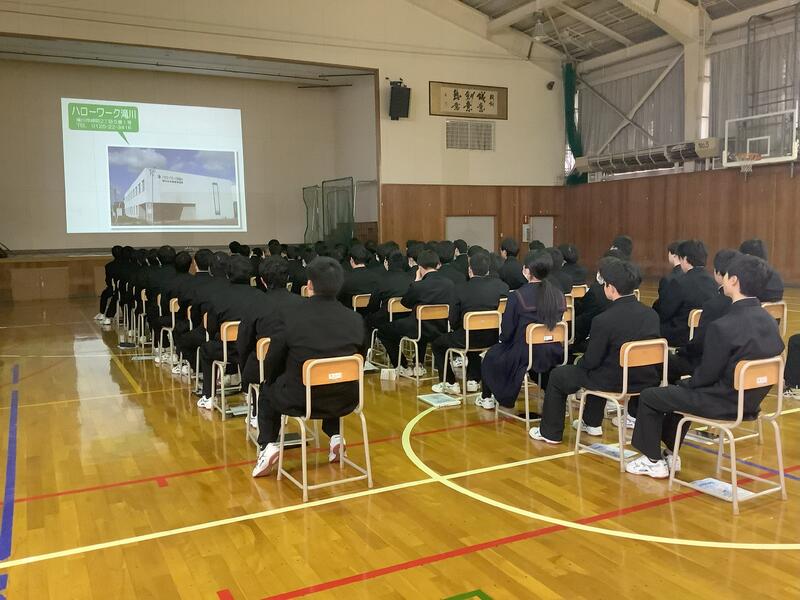 本校では、11月7日(金)に、滝川職業安定所より就職支援ナビゲーターの田屋弘美様、益田貴弘様をお招きし、1・2年生を対象とした「ハローワーク講話」を実施しました。