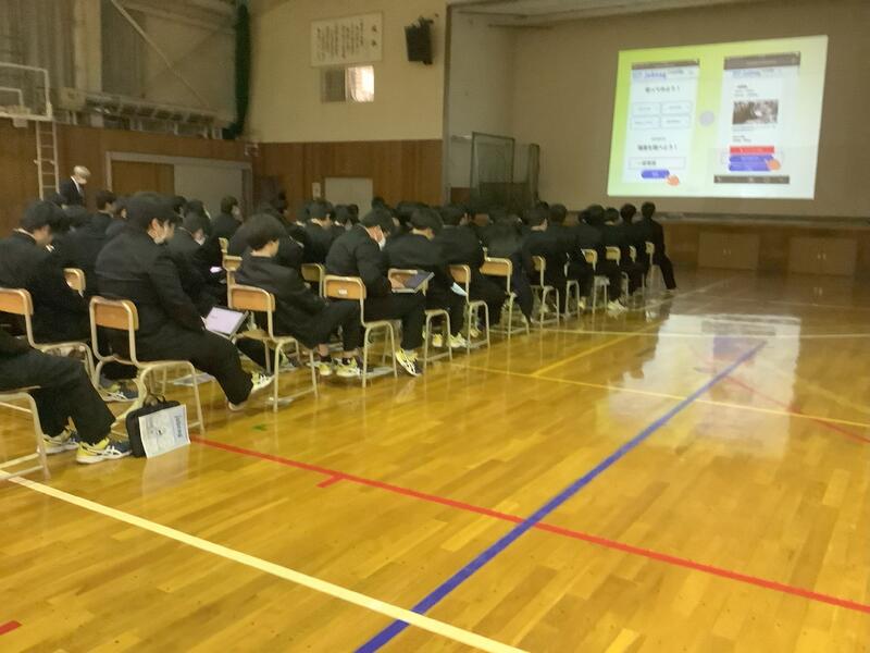 講話では、就職活動の流れや職業選択のポイントなどについて、アプリケーションを利用した活動をしながら分かりやすくお話しいただきました。生徒たちは積極的に活動に参加しており自分の将来について考える大切な機会の一つになったかと思います。